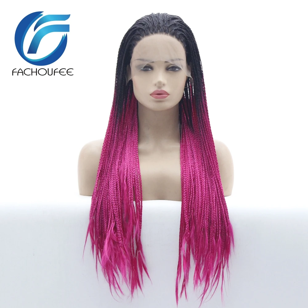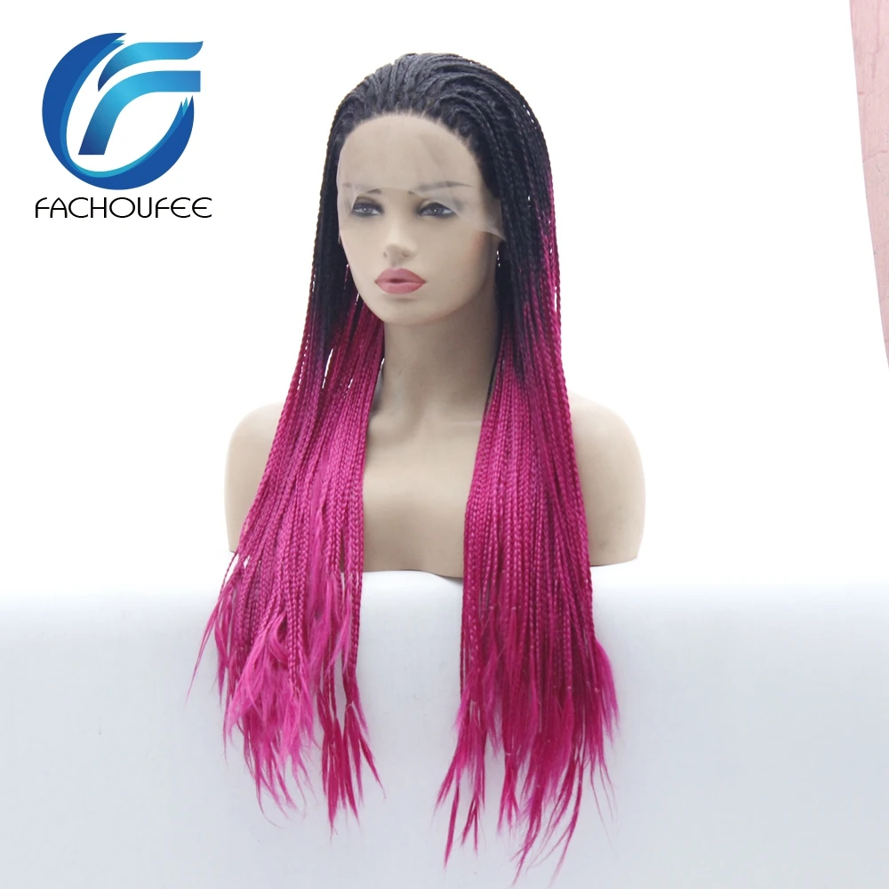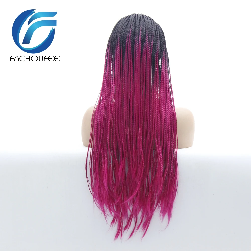 BEST SELLER FACHOUFEE Two Tone Color Braided Box Braids Hair Synthetic Lace Front Wig Ombre Handmade Braided Wi