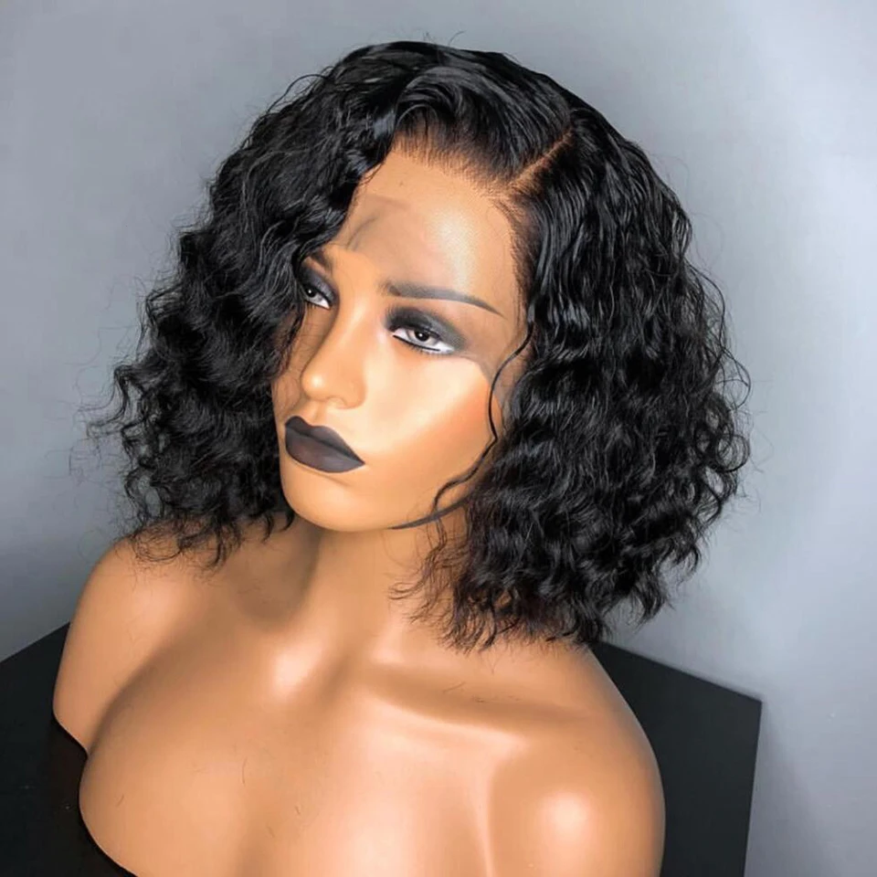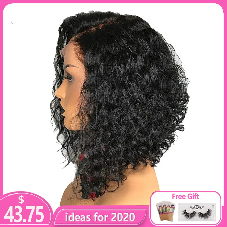 13x4 Lace Front Short Bob Wigs Pre Plucked Brazilian Remy Curly Real Human Hair Toppers With Baby H
